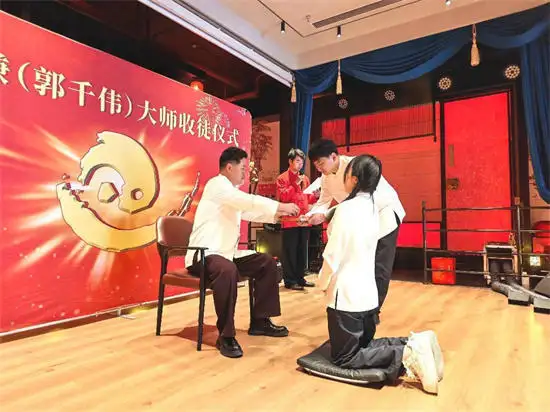 (2)请拜师人邓红玲将拜师帖举过头顶。