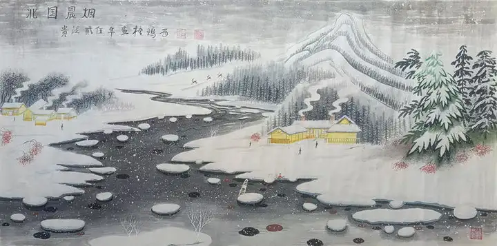 我爱画山水,春夏秋冬,春天的杏树花有红粉白色,映山红,答拉香。河边有槟榔花黄色,婆婆丁花黄的,小兰花芍药花有红、粉、白,牡丹花红、白、粉、黄色、黑色。